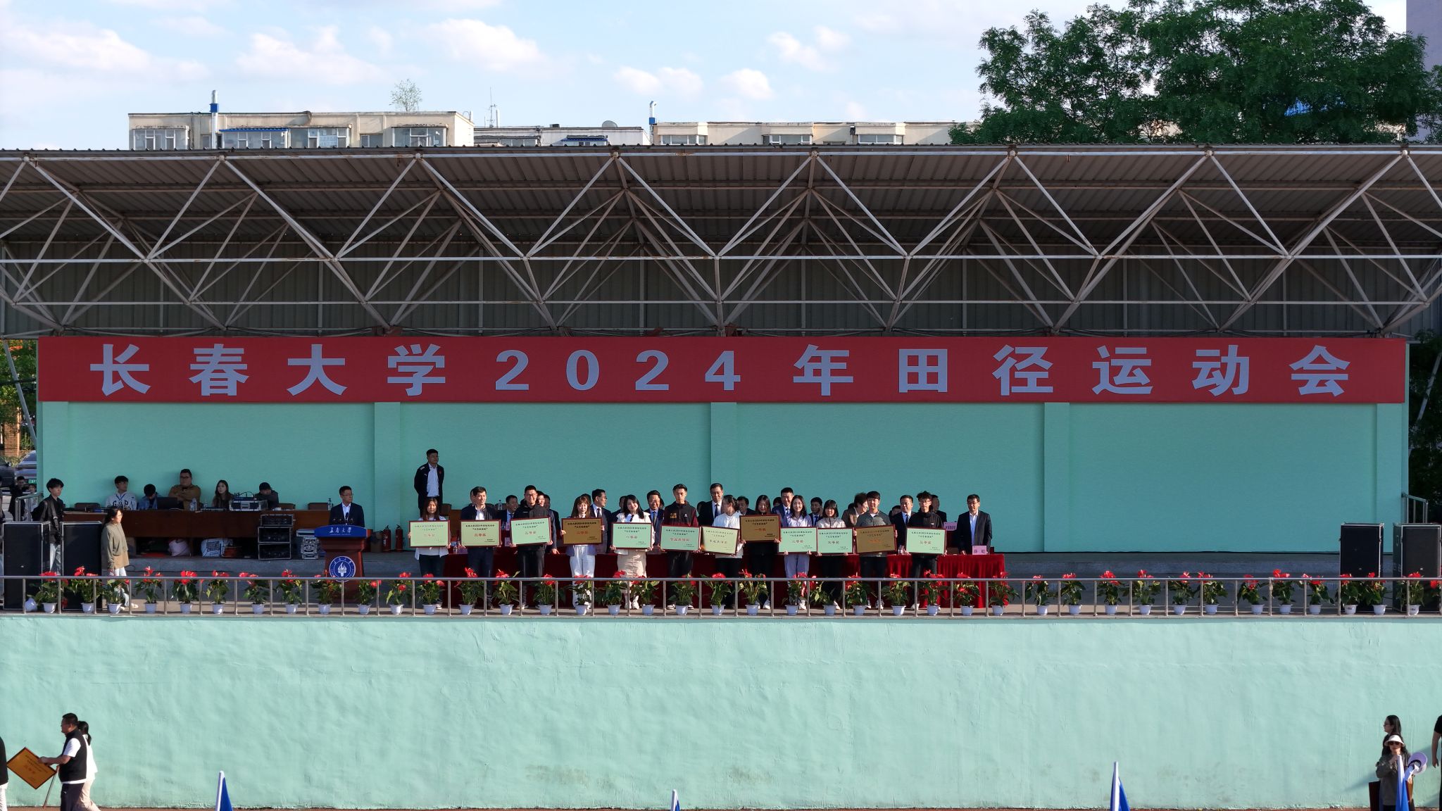學校領導為2024年長春大學“五四”越野接力賽、2024年長春大學“冠軍杯”學生排球賽、2024年長春大學“逐夢杯”學生男子籃球賽、長春大學2024年師生路跑接力賽團體賽、長春大學2024年師生路跑接力賽個人賽獲獎者及在本次賽會中獲體育道德文明風尚獎、文藝表演獎和學生組團體總分前八名的集體頒獎。