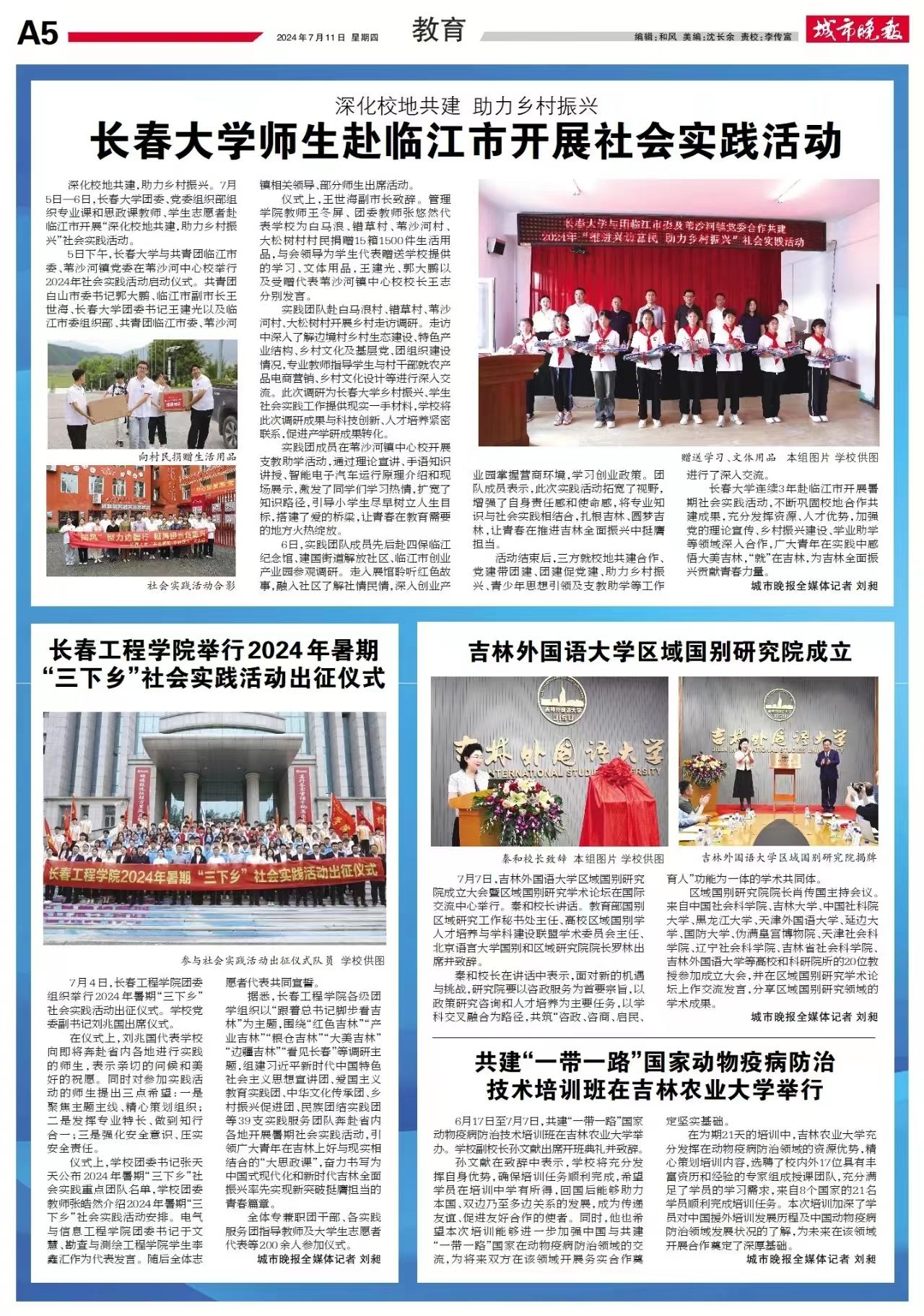 為深入學習貫徹黨的二十大精神,學習習近平總書記五四青年節對全國廣大青年寄語精神,引領廣大青年學生上好與現實相結合的“大思政課”,推進“第二課堂”與“第一課堂”深度融合,深化校地共建,助力鄉村振興,7月5日—6日,校團委、黨委組織部組織專業課和思政課教師、學生志愿者赴臨江市開展“深化校地共建,助力鄉村振興”社會實踐活動。中國吉林網《城市晚報》對此進行報道。