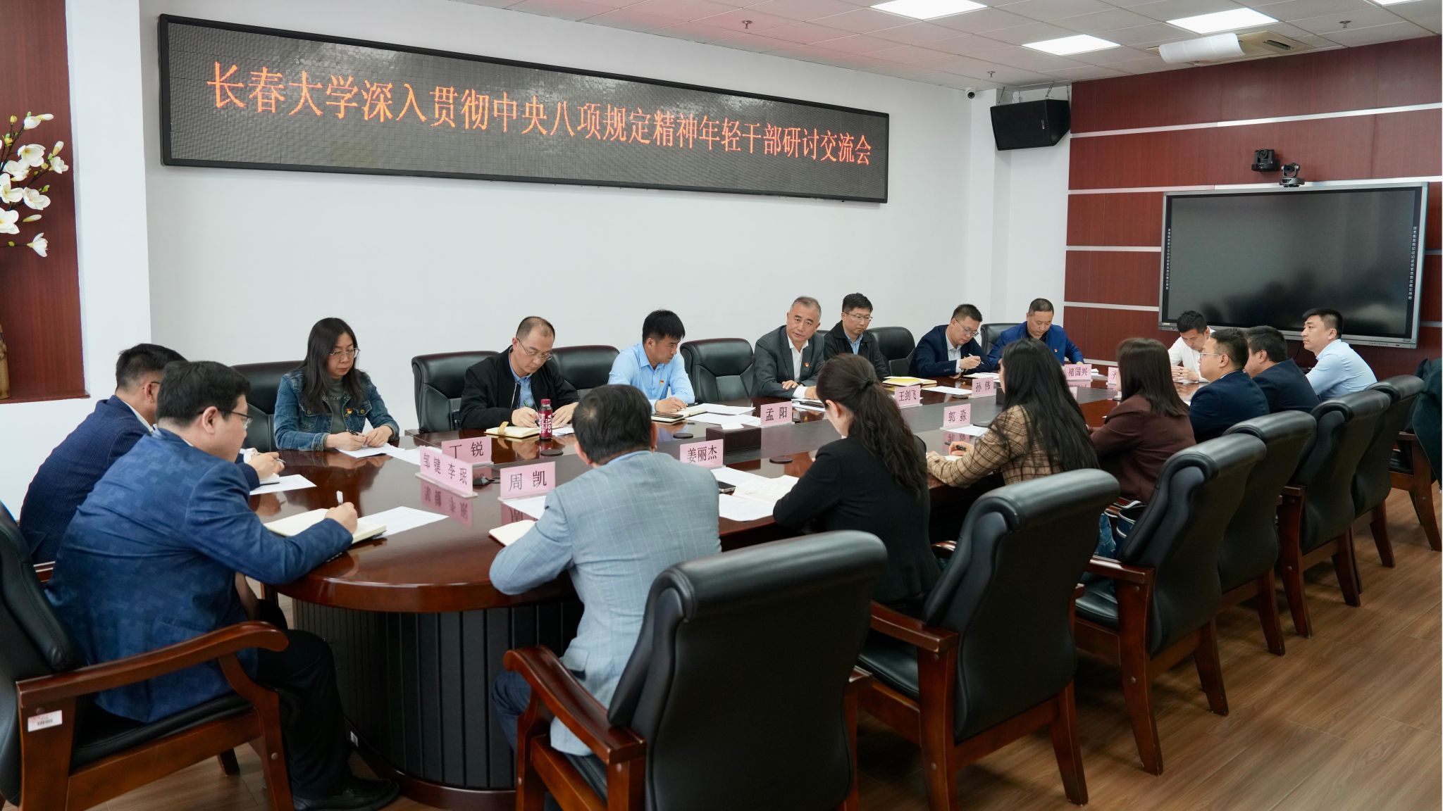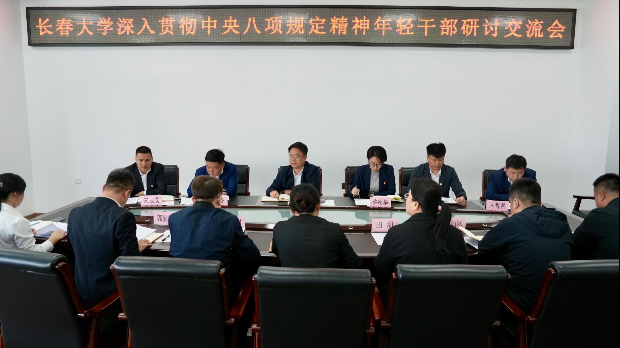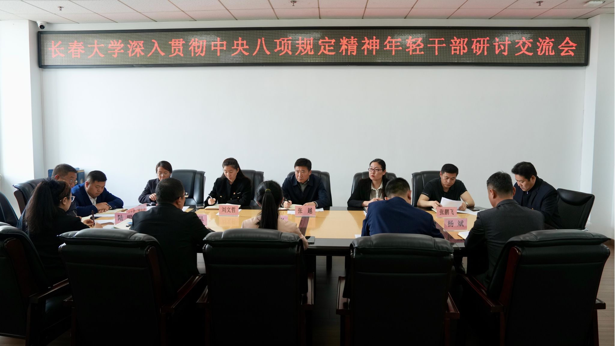 第二階段學(xué)校黨委副書記王劍飛、鞏英春,紀(jì)委書記張?jiān)椒謩e主持召開深入貫徹中央八項(xiàng)規(guī)定精神年輕干部研討交流會(huì),與會(huì)人員結(jié)合自身工作實(shí)際進(jìn)行交流發(fā)言。